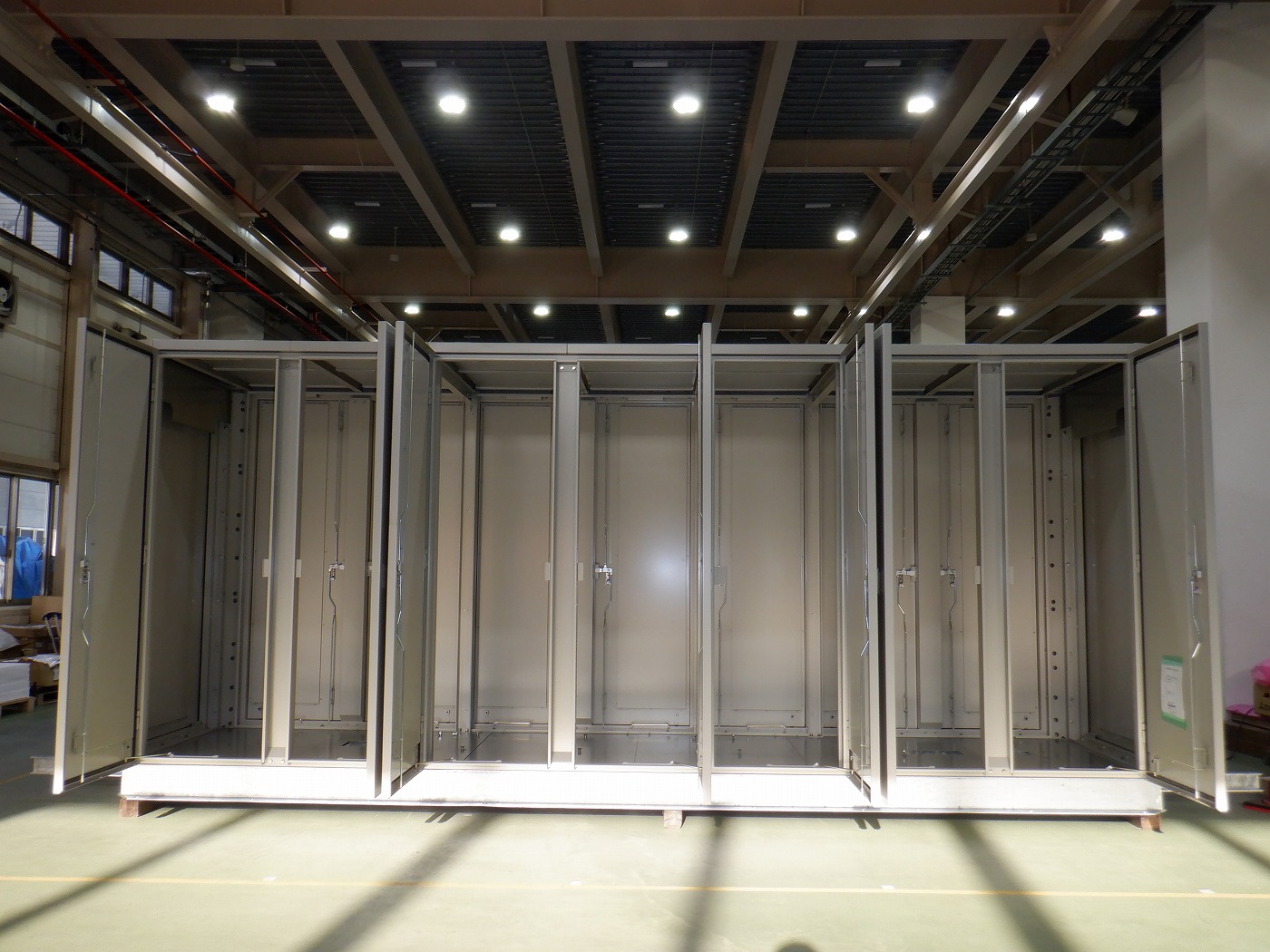 本製品は蓄電池盤やUPS盤などを収納する大型屋外機器カバー・シェルターとなります。