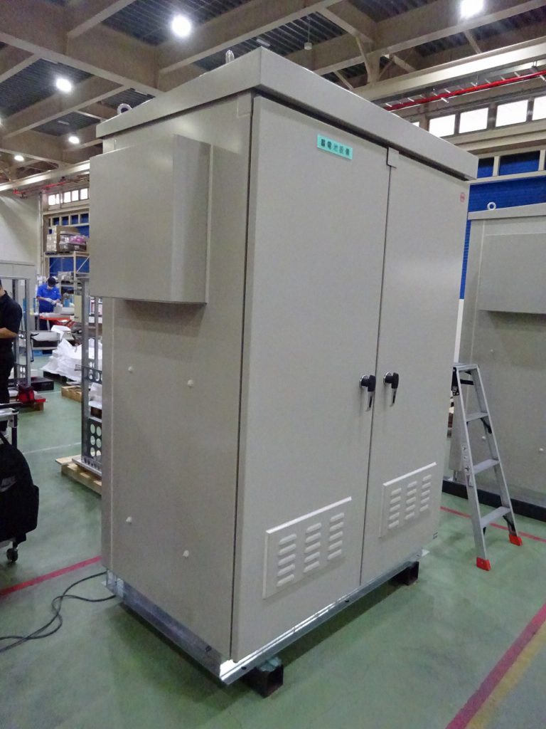 使用用途は屋外に設置する蓄電池(リチウムバッテリー、鉛蓄電池)又は蓄電池設備を自然環境(雨、雪、ホコリ等)による故障(水分による短絡、環境温度による機器故障、荷重による破損等)から守る為、条例キュービクル蓄電池設備の構造規格に合格した盤の中に収納しています。